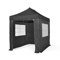 Roof: 260g/sqm, Polyester, PVC coating with tapes stitching and reinforced pressure points & fully waterproofSide Walls: 4 x Standard side walls ( 1 Door, 2 Church Window & 1 Plain ) Fully WaterproofContents Of The Box(es):1 x Powdered Matt Black Steel Frame