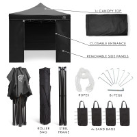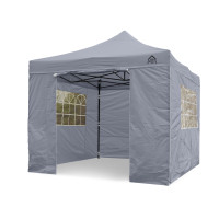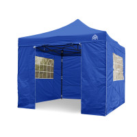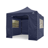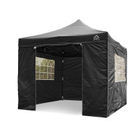 All Seasons Gazebos 3m x 3m Pop Up Gazebo including 4 side wallsAvailable in a choice of colours this All Seasons Gazebos pop up gazebo has been manufactured with quality in mind. It has a heavy-duty matt black steel frame along with a fully waterproof 260g/SQM, PVC coated polyester roof with all the pressure points reinforced.The 3x3m steel frame has fully integrated support struts within the roof which are for added stability of the gazebo, its instant ‘pop up’ design makes this gazebo much more desirable for quickness and ease. It literally erects in minutes and is an instant shelterAbout the included side walls and the difference between ” Superior ” and ” Standard ” packages4 Standard Side walls are included within this package. The side walls interlock using a zip and connect to the roof using a velcro strip creating a 100% waterproof shelter. There is also additional velcro tabs to connect to the legs. We sell Gazebo packages in ” Superior / Heavyweight ” and ” Standard / Lightweight ” Both sets of sides are fully waterproof . The big difference is the quality of materials used. On the standard package ( this item ) the material of the sides is 210D while the superior packages are 260G which is the same material as the roof. The following image shows a superior and standard panel side by side.If you would prefer the ” Superior ” package then these are also available on our website . The standard package is still a fantastic purchase but the superior package is exceptional and is highly recommendedThe 3x3m frame has 3 adjustable height settings and can be used on multiple surfaces such as sand, grass, concrete, wooden decking etc and is designed to last many years. This gazebo can be used with or without the supplied side panels. You can also use just a couple of sides if you did not want to use all 4.All our gazebos come with a premium wheeled carry bag, tent pegs, rope, 4 x leg weight bags and a frame parts warranty against manufacturing defects ( Please see our frame parts warranty page for full details )Please be aware that our branded name “All Seasons Gazebos” is due to them being able to be used in all seasons. This does not mean that they can be left up all year round, overnight or unattended, doing so will void your warranty. As with all top gazebo brands the product is only meant as a temporary structure. Many customers choose to leave these up with no problem at all but this is done at your own risk.Gazebo Specs:Size 3m x 3mGazebo legs: Powder Matt Black Steel Frame ( 30mm x 30mm )Gazebo metal struts: SteelLeg height adjustment: Pop In PinRoof: 260g/sqm, Polyester, PVC coating with tapes stitching and reinforced pressure points & fully waterproofSide Walls: 4 x Standard side walls ( 1 Door, 2 Church Window & 1 Plain ) Fully WaterproofContents Of The Box(es):1 x Powdered Matt Black Steel Frame1 x Roof8 x Tent pegs4 x Guy ropes1 x 18 month Frame Parts Warranty