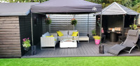 Connected 3x3m Popup Gazebos.