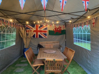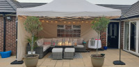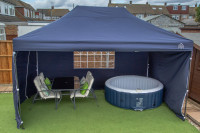This gazebo size is perfect to fit over a table & 4 Chairs plus house one of our brilliant Spas! Can also be used as a party tent!