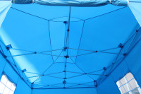 Please allow 2-3 days handling time on this pop up gazebo.This instant pop up hex gazebo is great for commercial use within schools, councils and businesses. With its fully waterproof 300gpsm PVC coated heavy duty roof, reinforced pressure points and taped stitching it truly is an amazing industrial grade.The hexagonal aluminium frame has fully integrated support struts within the roof are for added stability of the gazebo, its instant ‘pop up’ design makes this gazebo much more desirable for quickness and ease. It literally erects in minutes!The hex 40 has adjustable height settings and can be used on multiple surfaces such as sand, grass, concrete, wooden decking etc and is designed to last many years. The hex 40 can be purchased with or without side panels. This listing includes side panels.All our gazebos come with a premium wheeled carry bag, tent pegs, ratchet rope, 4 x heavy weight leg weight bagsGazebo Specs:Size: 3m x 4.5m