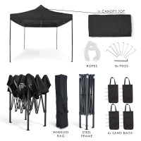 All Seasons Gazebos 3x4.5m Pop Up Gazebo – Includes a Wheeled Carry bag, 4 Leg weight bags, Rope, PegsAvailable in a choice of colours this All Seasons Gazebos pop up gazebo has been manufactured with quality in mind. It has a heavy duty matt black steel frame along with a fully waterproof 260g/SQM, PVC coated polyester roof with all the pressure points reinforced.The 3x4.5m steel frame has fully integrated support struts within the roof which are for added stability of the gazebo, its instant ‘pop up’ design makes this gazebo much more desirable for quickness and ease. It literally erects in minutes and is an instant shelterThe 3x4.5m Pop up is one of our larger gazebos . We have 1 size larger and 4 smaller available so please check that you have the space available for this sizeThe 3×4.5m frame has 3 adjustable height settings and can be used on multiple surfaces such as sand, grass, concrete, wooden decking etc and is designed to last many years. This gazebo can be purchased with or without side panels ( This listing is without side walls ) and weighs 30.5kgs with no sides, 33.5kg with our lightweight side panels or a brilliant 39.5kgs with our heavyweight sides!All our gazebos come with a premium wheeled carry bag, tent pegs, rope, 4 x leg weight bags and a frame parts warranty against manufacturing defects ( Please see our frame parts warranty page for full details )If you require side walls these can be added from our spares and accessories section or please click on the gazebo packages option and select ” Standard ” for our lightweight sides or ” Superior ” for our heavyweight sidesPlease be aware that our branded name “All Seasons Gazebos” is due to them being able to be used in all seasons. This does not mean that they can be left up all year round, overnight or unattended, doing so will void your warranty. As with all top gazebo brands the product is only meant as a temporary structure. Many customers choose to leave these up with no problem at all but this is done at your own riskGazebo Specs:Size 3m x 4.5mGazebo legs: Powder Matt Black Steel Frame ( 30mm x 30mm )