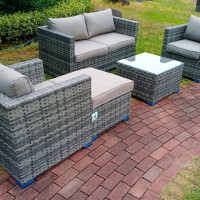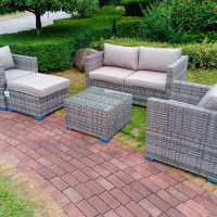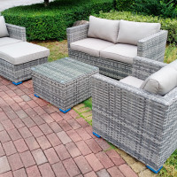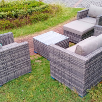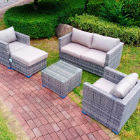 5 Piece Luxury Aluminium Framed Mixed Grey Rattan Sofa and table set